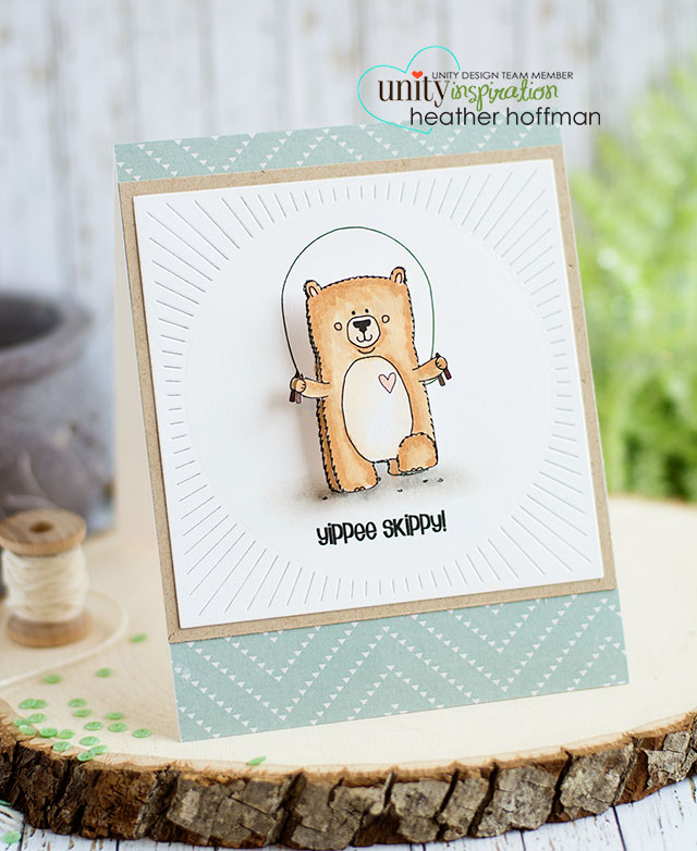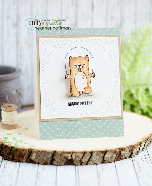 Good morning! I’m running a bit later this morning than I planned – but better late than never, right? I finally had some time (and a bit of mojo!) to play with some of the fun new stamps that Angela released as a surprise last Friday – that are all still on sale I might add! As soon as I saw this cute Yippee Skippy stamp, I just KNEW it needed to be on an action wobble!!!